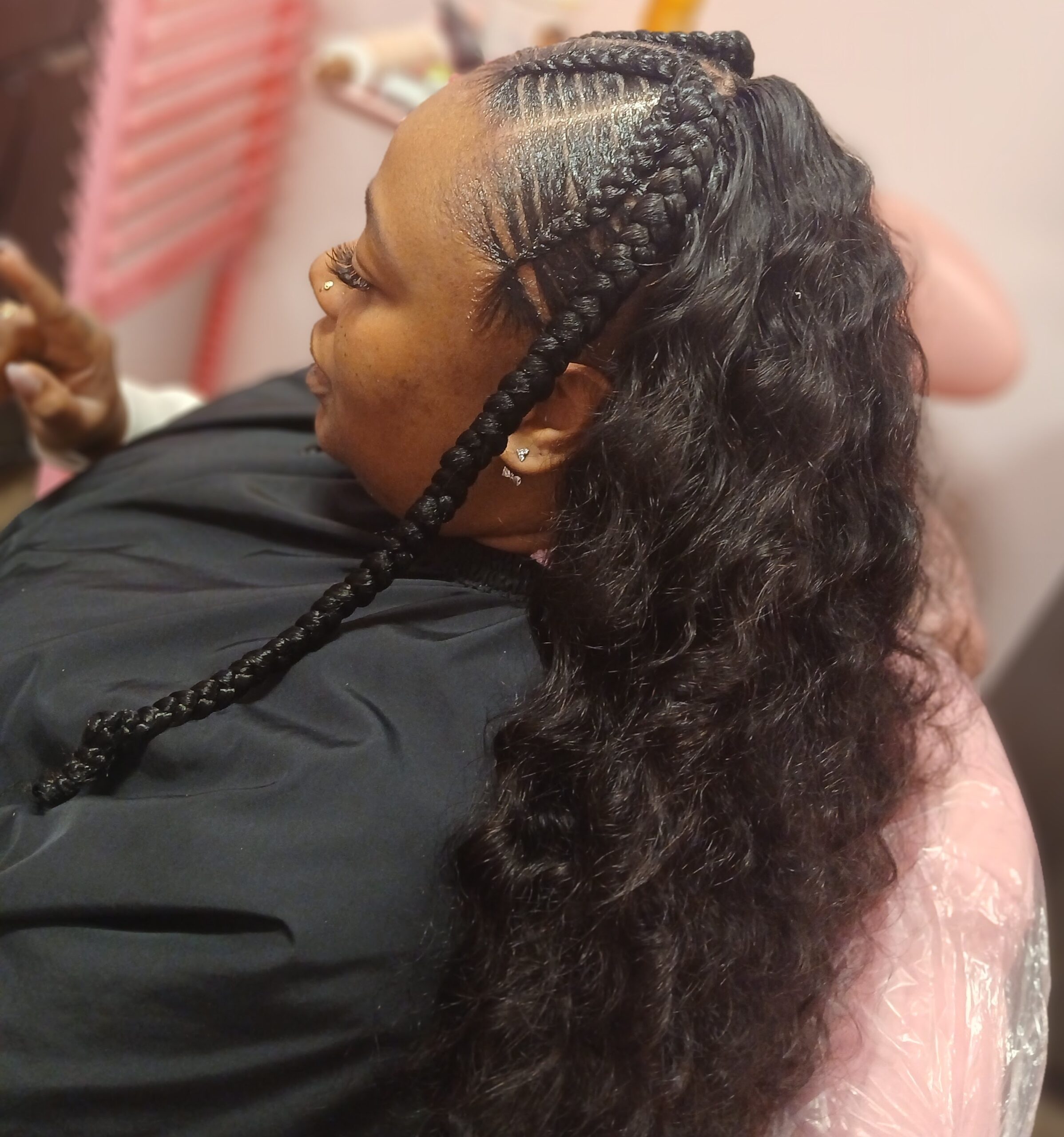 This blended style combines the benefits of feed-in braids with a quick weave or sew-in extensions, offering versatility and low maintenance